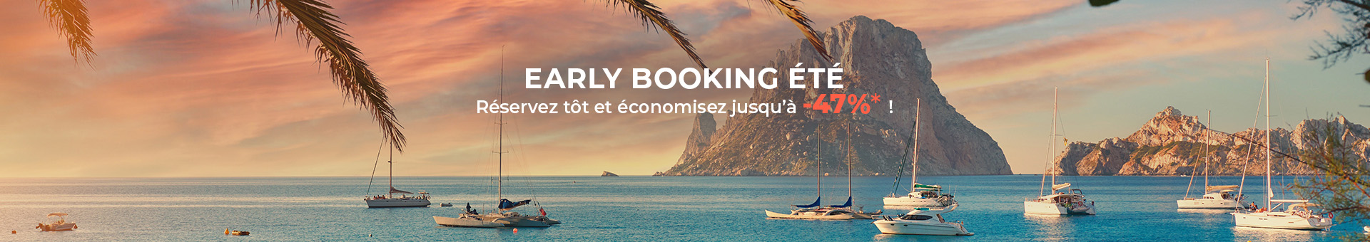 Anticipez vos vacances d'été et bénéficiez des meilleures offres grâce à notre Early Booking ! 🌞 Réservez dès aujourd’hui pour profiter de tarifs avantageux sur une large sélection de destinations. Plus vous réservez tôt, plus vous économisez avec Promovacances.